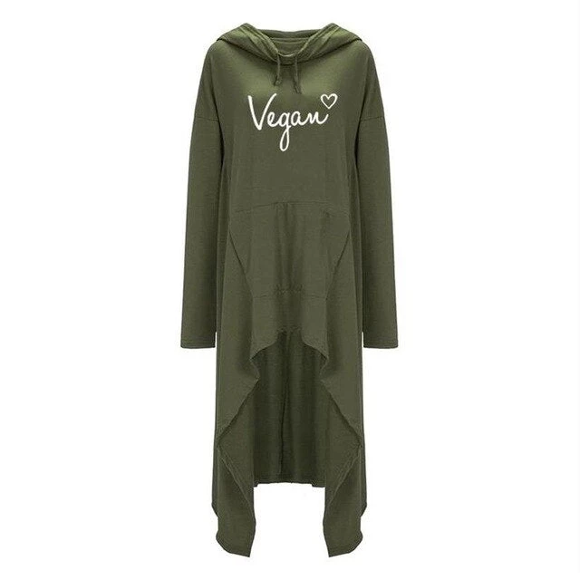 As most of you now, we are a vegan brand which supports eco-friendly practices when making our clothes and accessories. So why not state it to the world to see with a cute hoodie-like dress? Made from a fine cotton-polyester blend for a nice soft feeling on the skin. And it has something most dresses lack – pockets!